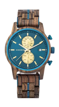 Relógio de Madeira Cronôgrafo Blue